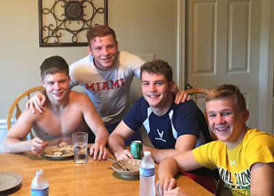 A complete protein source with every meal, starchy complex carbs to fuel their muscles, and fruits and vegetables for them to get the fiber, vitamins & minerals, and phytochemicals to grow and have the energy needed for solid sports performance. Plenty of water. Fueling an athlete is important, and sports nutrition is a vital piece of the puzzle. Two things an athlete needs more than the average person is better quality nutrition and more sleep. Especially when their young and growing! I saw many young wrestlers whose dads were restricting their kids diets too much...I personally felt they were crazy to do so, but hey, to each their own.